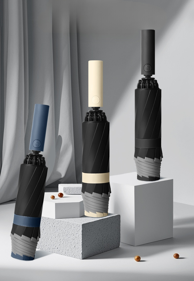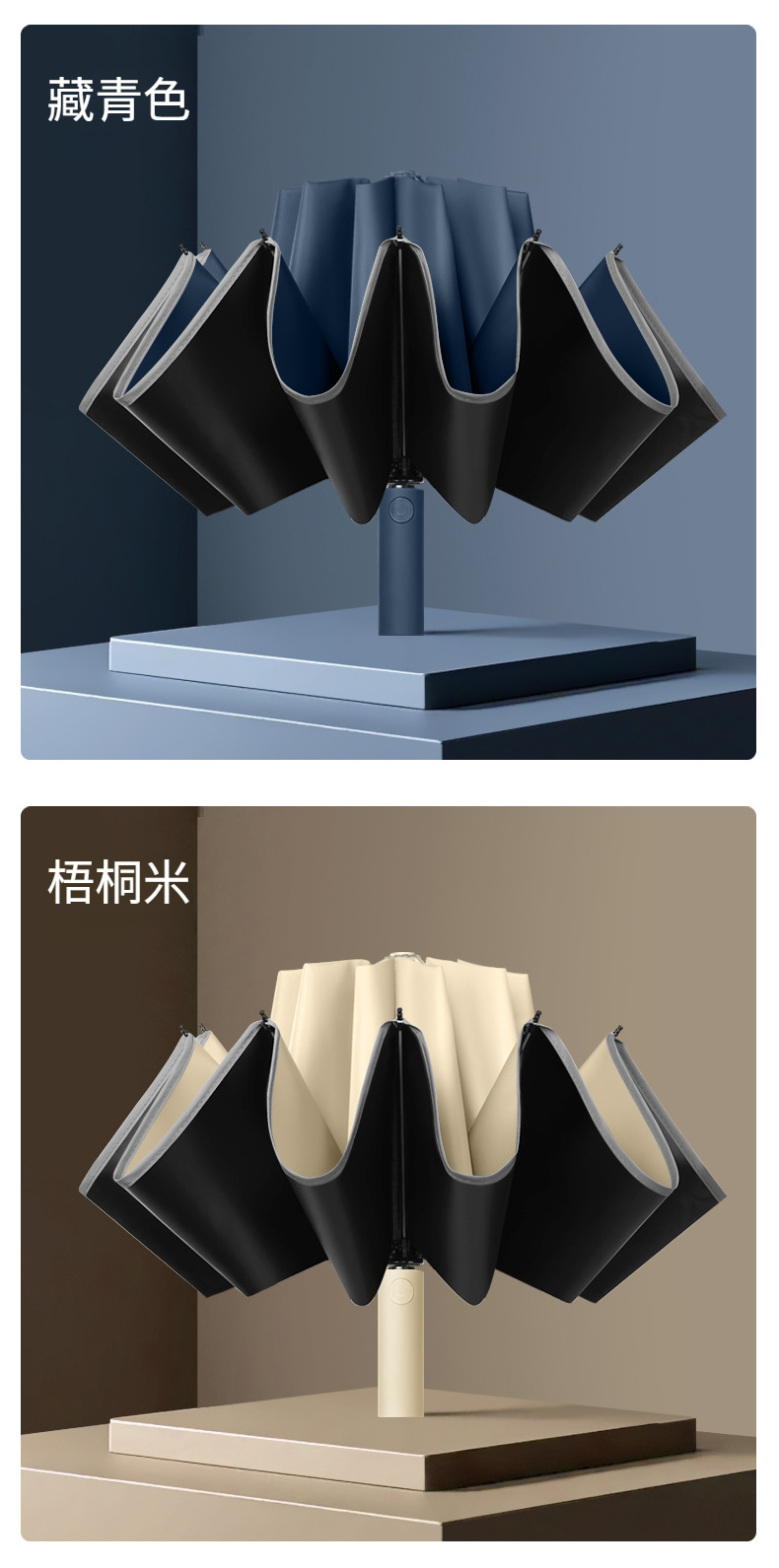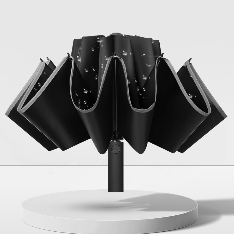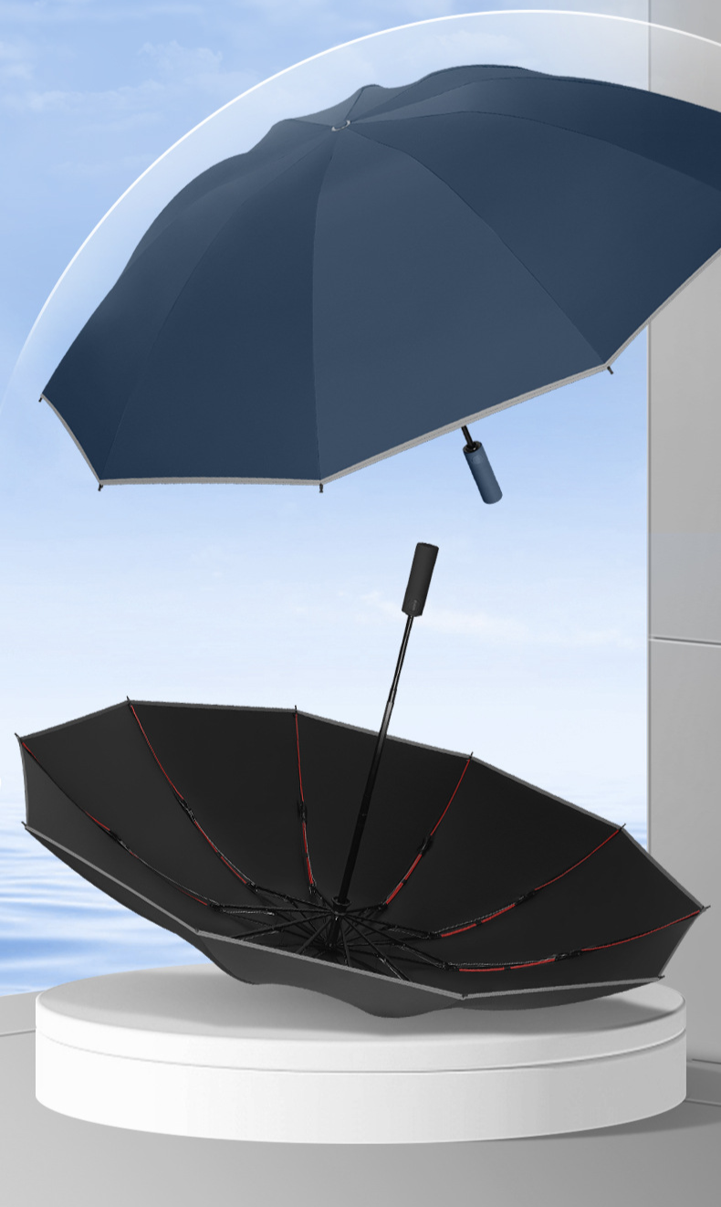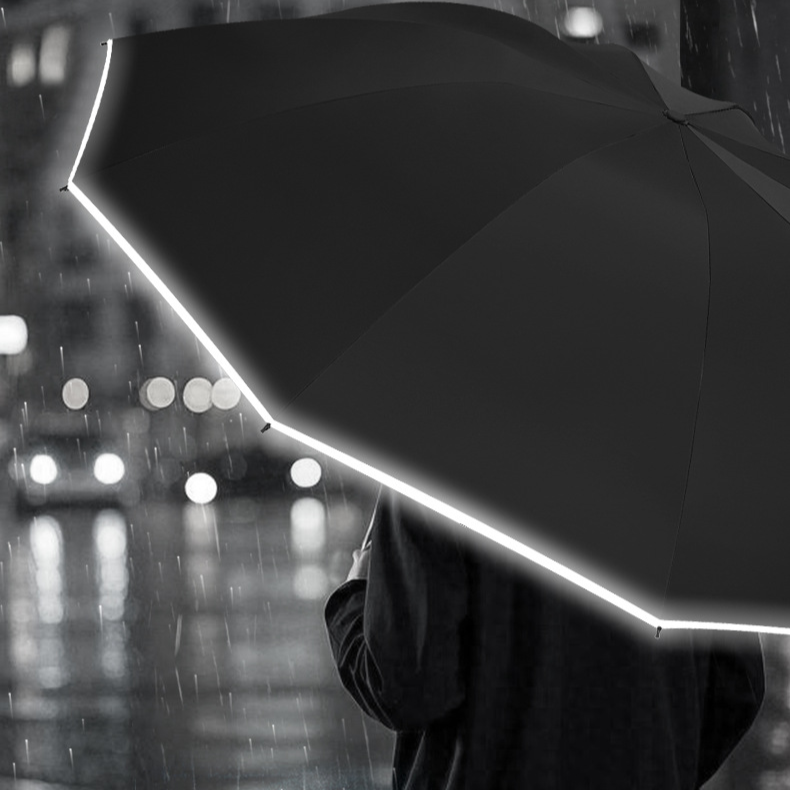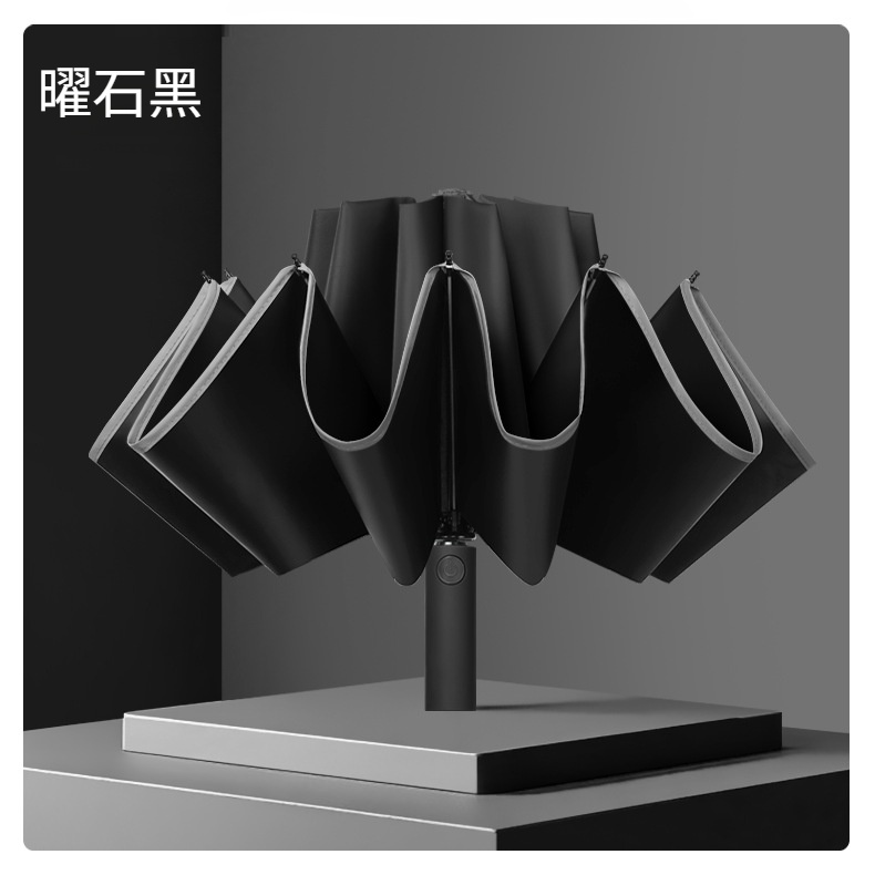 全自動雙龍骨帶反光條黑膠防曬防紫外線晴雨兩用傘